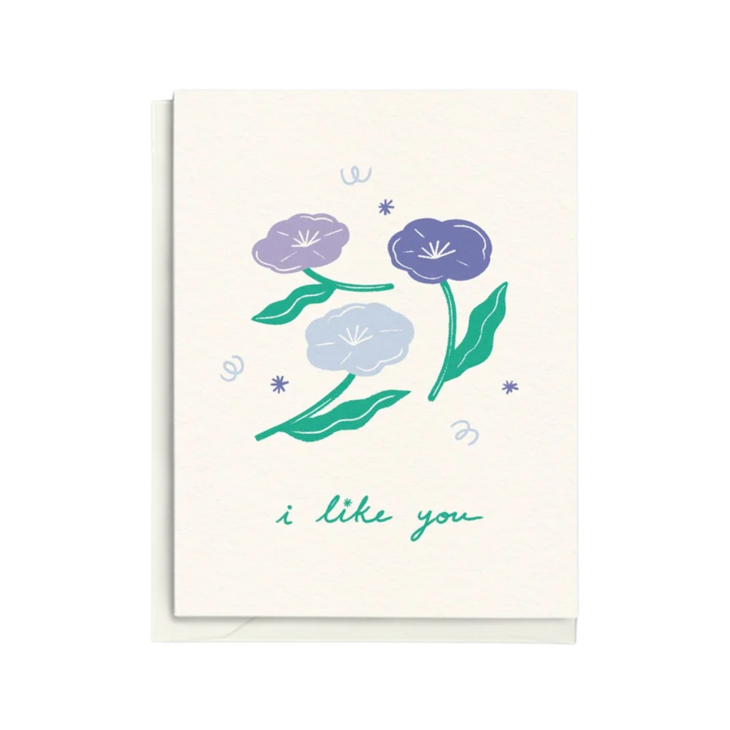 Outside of card printed in full color on heavyweight 20pt matte cotton paper. Blank inside for personal messaging.