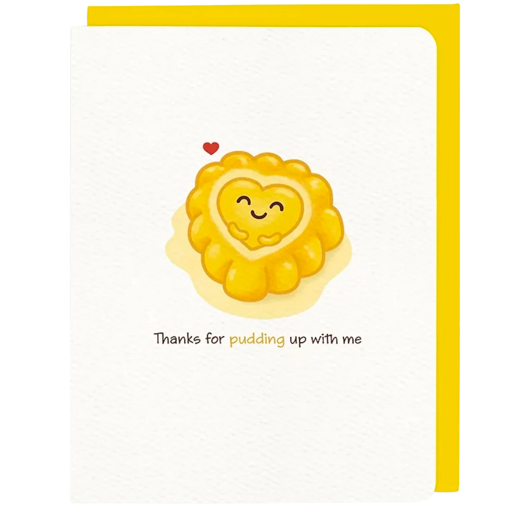 Surprise a loved one with this card that features the oh-so-popular mango pudding that you find at dim sum! The signature heart-shaped pudding is happy and grateful on behalf of you...and to be sitting in a pool of evaporated (or condensed) milk!