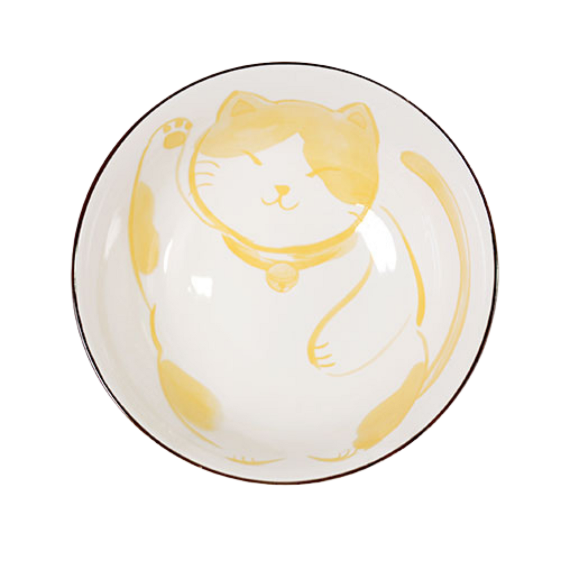 A cute bowl featuring a smiling lucky cat.
