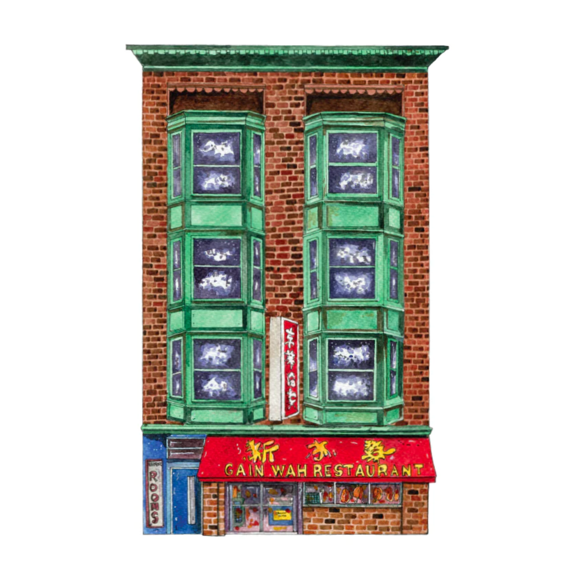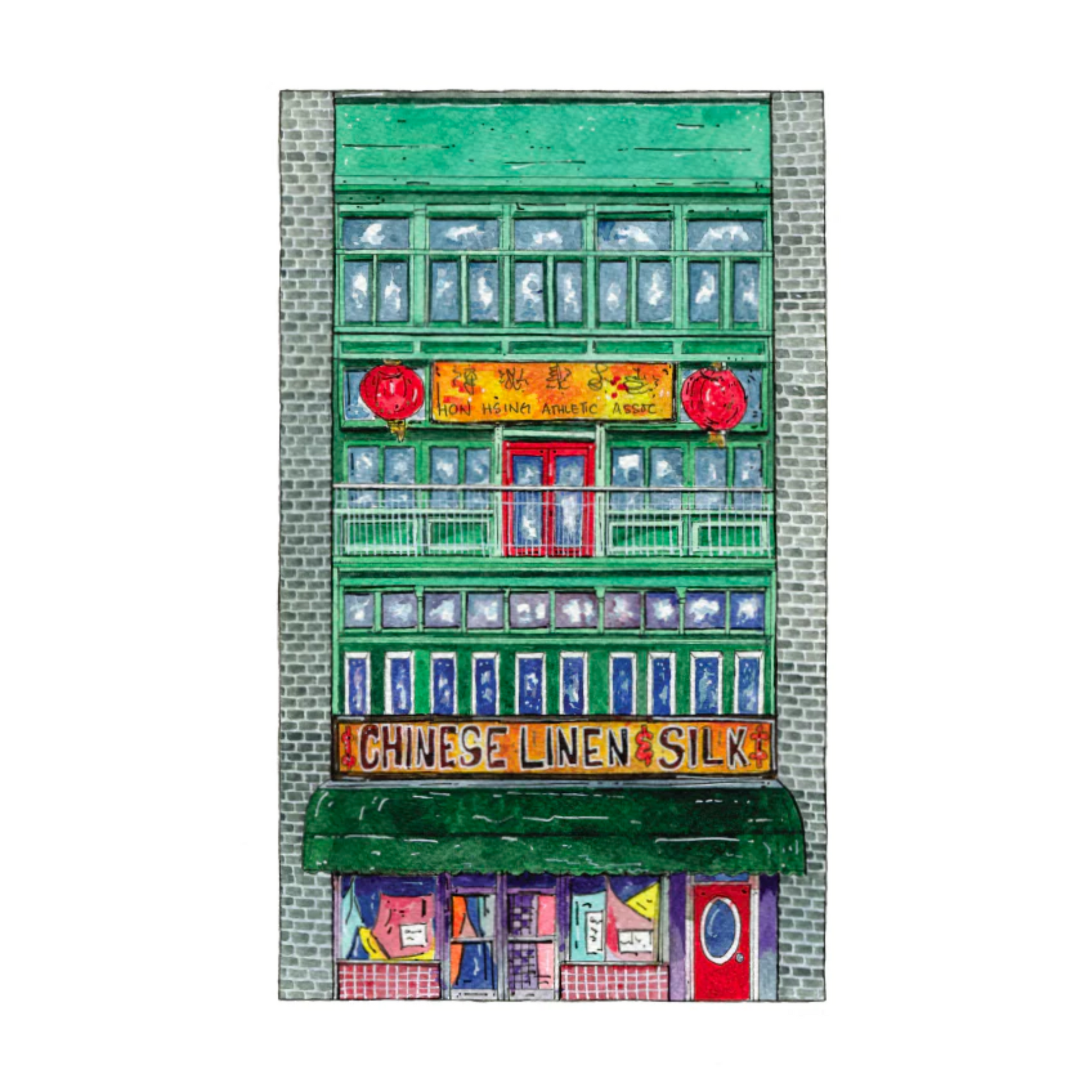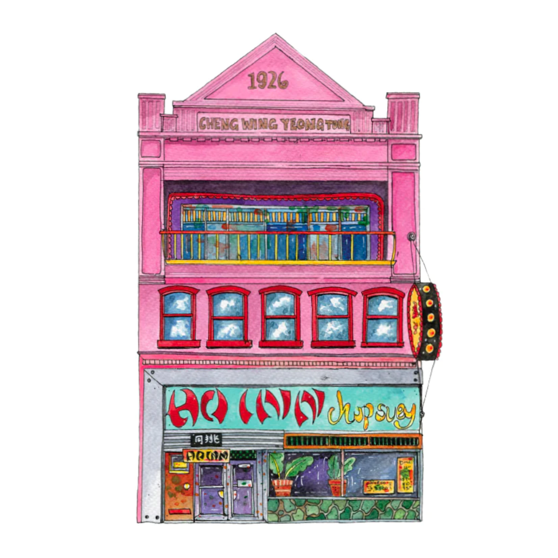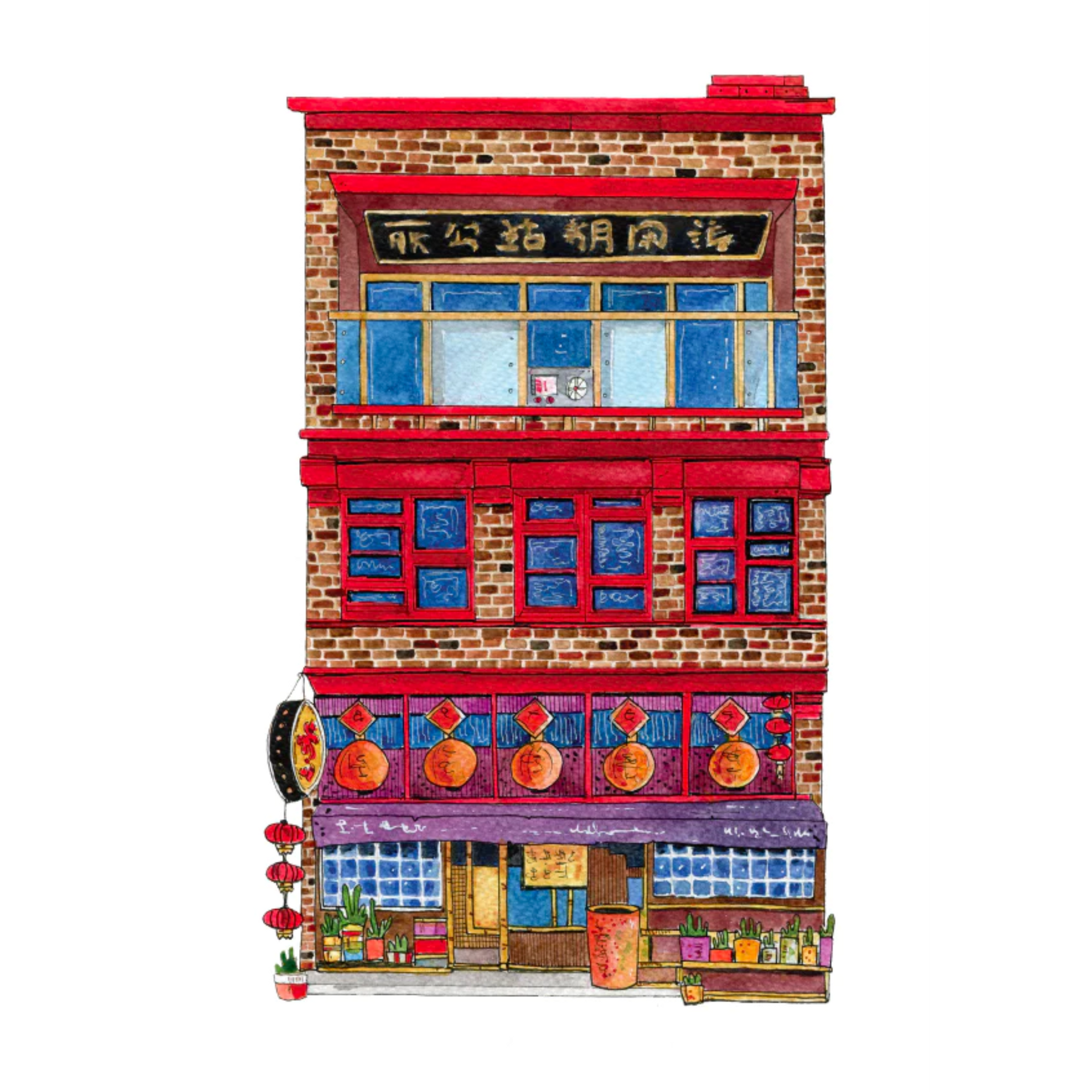 The Chinatown Vancouver illustrations is a watercolour series featuring a number of historical buildings in Vancouver’s Chinatown. The paintings invite questions regarding place and memory, as well as dialogue that unravels and reimagines a Chinatown that once was and could be. Influenced by historic photographs of Vancouver, the colourful illustrations portray Chinatown during its thriving days when businesses such as Cathay Importers, Ho Inn Restaurant, Ming Wo Cookware, and Ho Ho’s Restaurant were some of the pillars of the community. The paintings also celebrate the gathering places of the Societies such as the Chinese Benevolent Society, Mah Society, and the Chin Wing Chun Society as well as their efforts in developing a community for newcomers to Canada. In 2022, the series was featured on Global BC and CBC News.