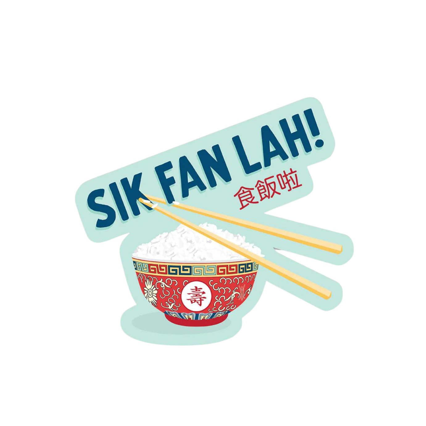 Sik fan lah (食飯啦) - eat now, time to eat. Sik fan literally means "eat rice" but is often said to call people to the table to eat or used at the beginning of a meal similar to how we say, "cheers" before taking a drink.