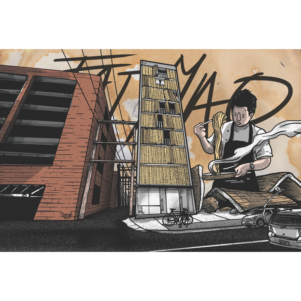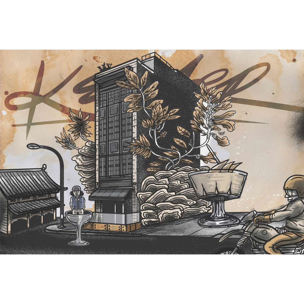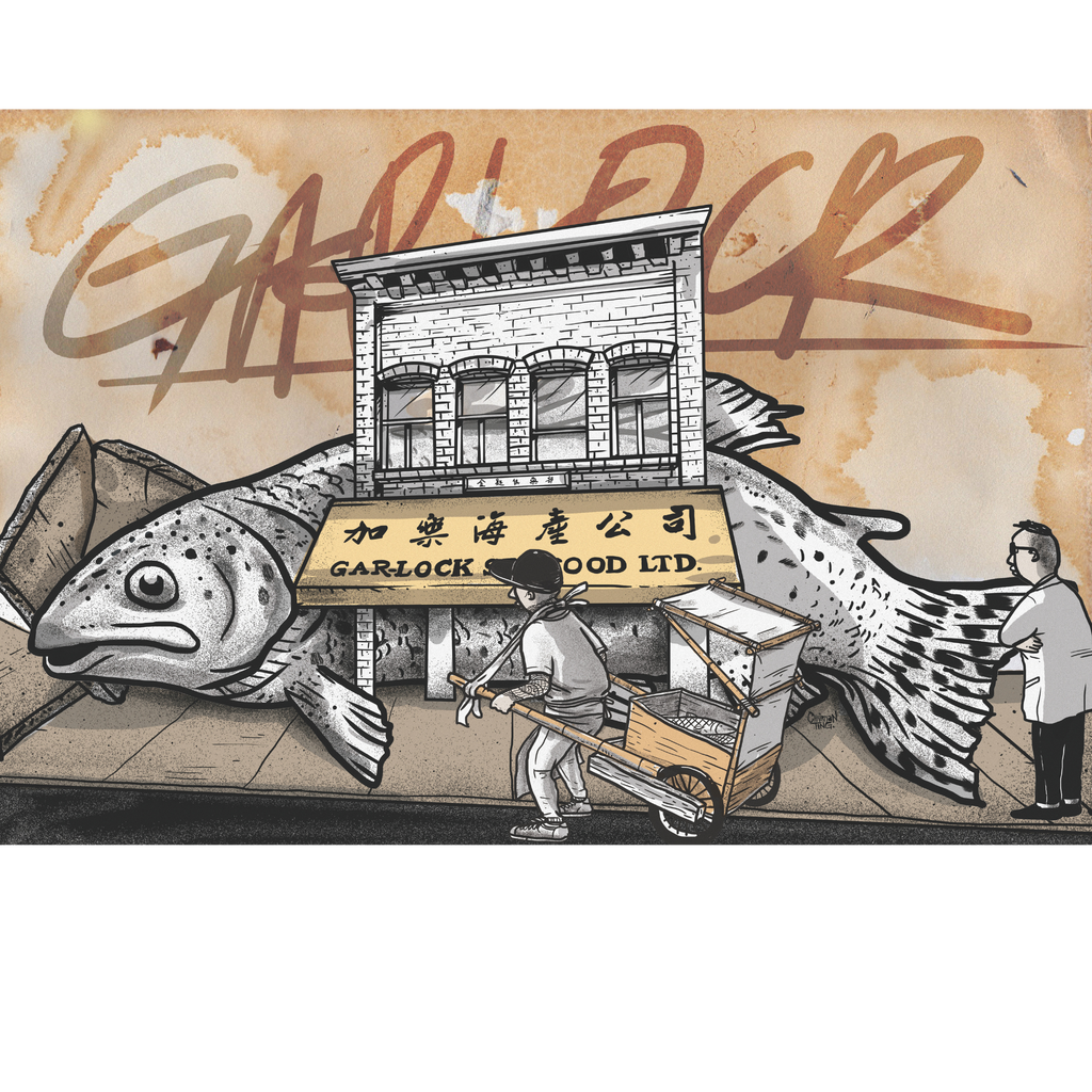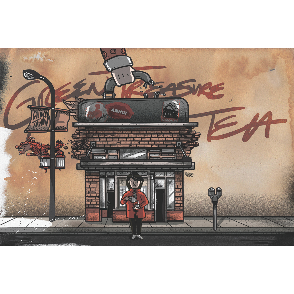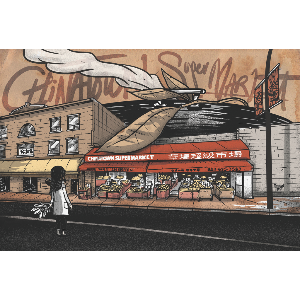 A collection of illustrations of local businesses in Vancouver Chinatown