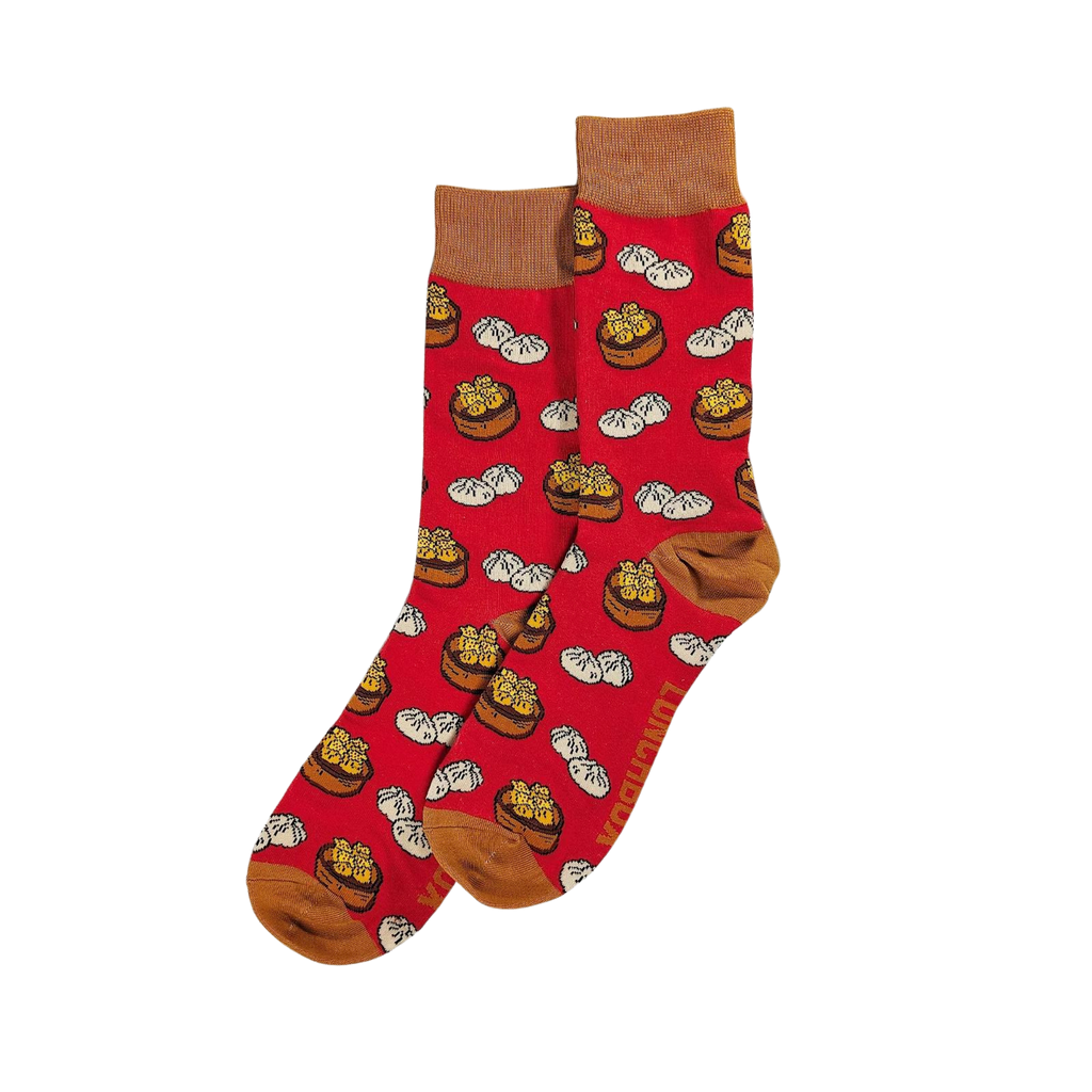 Be the steamiest person in the room with the "Dim Sum All Day" Dim Sum Socks! Featuring unique and playful dim sum patterns, these Cotton Crew socks are a must-have for every dim sum enthusiast.