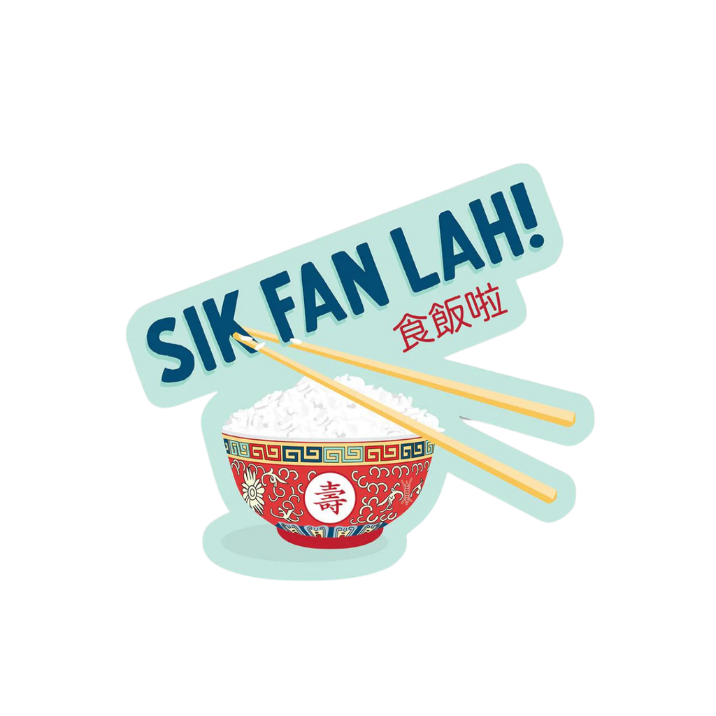 Sik fan lah (食飯啦) - eat now, time to eat. Sik fan literally means "eat rice" but is often said to call people to the table to eat or used at the beginning of a meal similar to how we say, "cheers" before taking a drink.