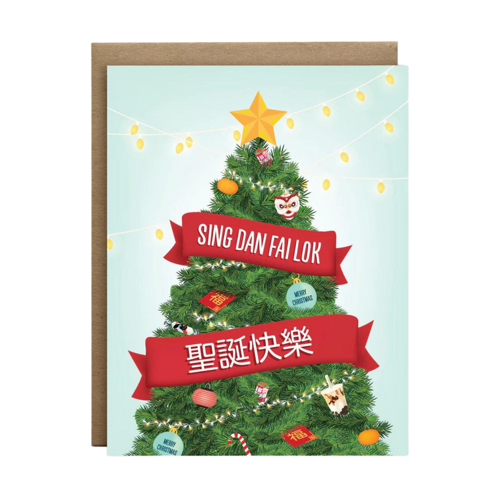 Sing Dan Fai Lok (聖誕快樂) means Merry Christmas in Cantonese.